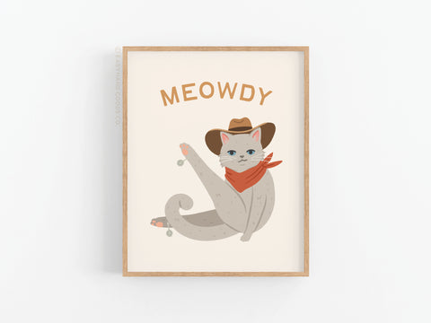 Saddle up, cat lovers! This Meowdy Cat Art Print features a playful feline ready to greet you with a big ol’ “Meowdy.” Perfect for adding a little cattitude to any space.